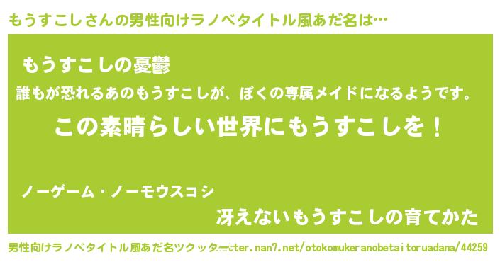 | 意味不明あだ名 | 『住所不定無職もうすこし(84歳)』 |