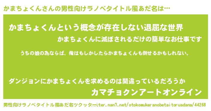 | ファンタジー風あだ名 | 『エターナルカマチョクンー』 |