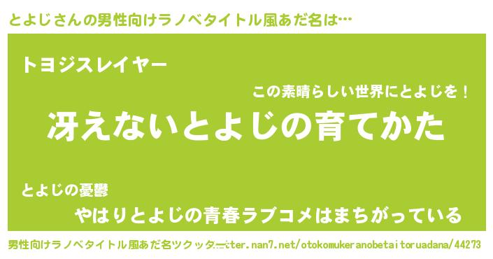 | ヘコむあだ名 | 『なまこ酢』『とよもー』 |