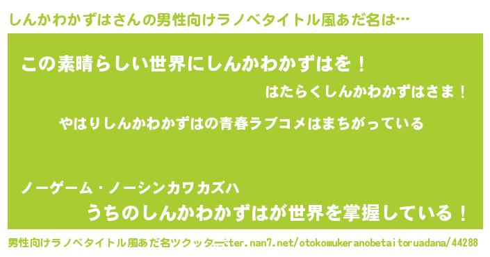| 肩書あだ名 | 『しんかわかずは総理大臣』 |