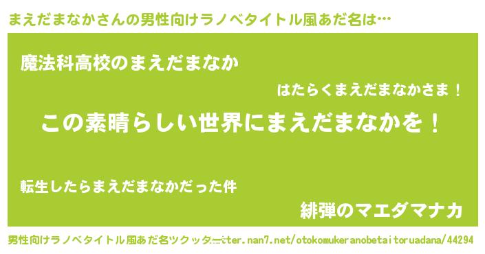 | 女子向けラノベタイトル風あだ名 | 『乙女ゲームの破滅フラグしかない悪役まえだまなかに転生してしまった…』 |