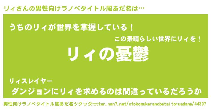 | 胡散臭い通販商品みたいなあだ名 | 『必ず成功するブレスレット…その名も「リィ」』 |