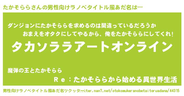 | 意味不明あだ名 | 『ペロリンたかそらら』『自称たかそらら』 |