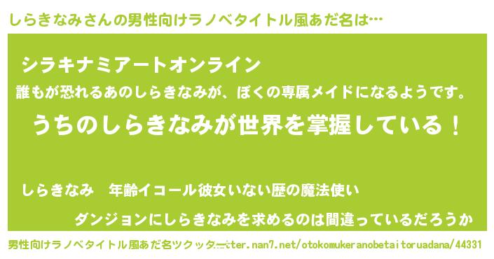 | 女子向けラノベタイトル風あだ名 | 『男装しらきなみの憂鬱な任務』 |