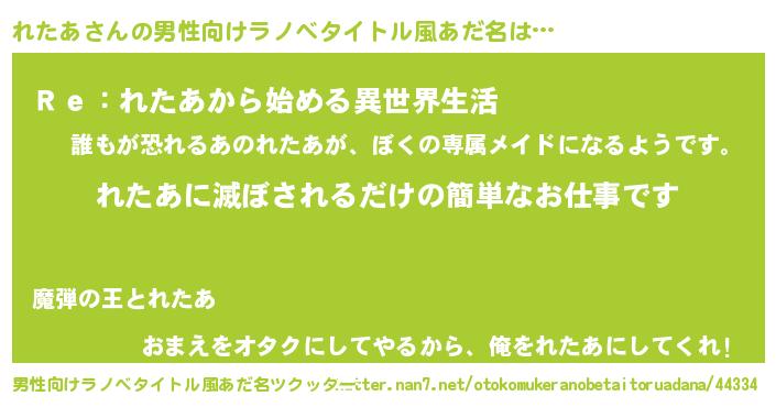 | 女子向けラノベタイトル風あだ名 | 『横柄れたあと宰相陛下』『闇のれたあ』 |