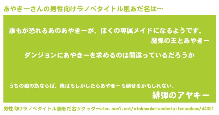 あやきーさんの男性向けラノベタイトル風あだ名をツクッター!