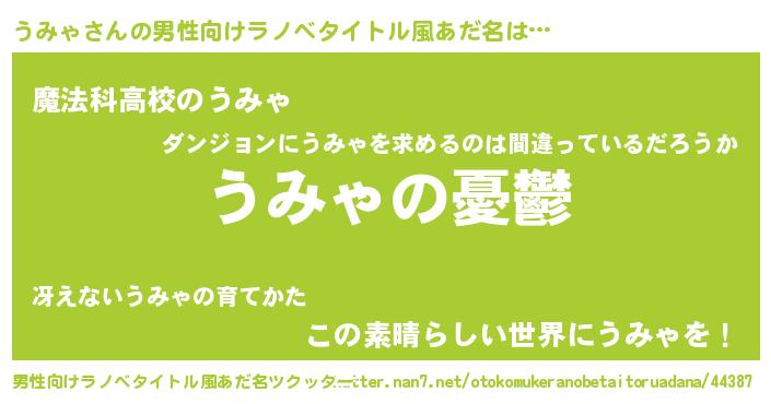 | 女子向けラノベタイトル風あだ名 | 『うみゃ姫と円卓の騎士』 |
