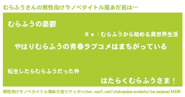 | 女子向けラノベタイトル風あだ名 | 『むらふうの雑貨屋さん』『闇のむらふう』 |