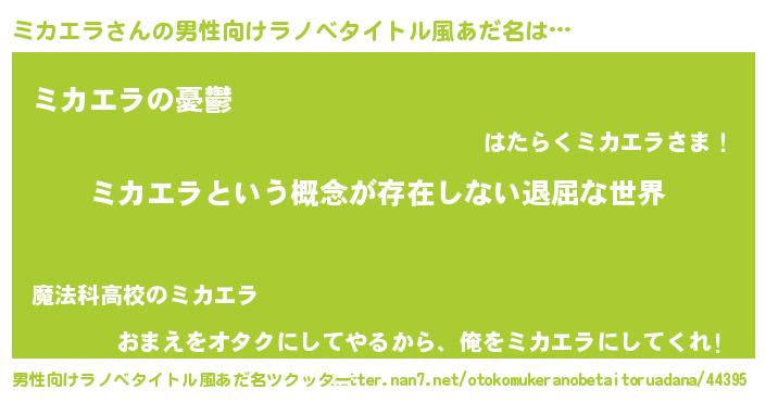 | ヘコむあだ名 | 『ミカエラ(笑)』『ミカっふぃ~』 |