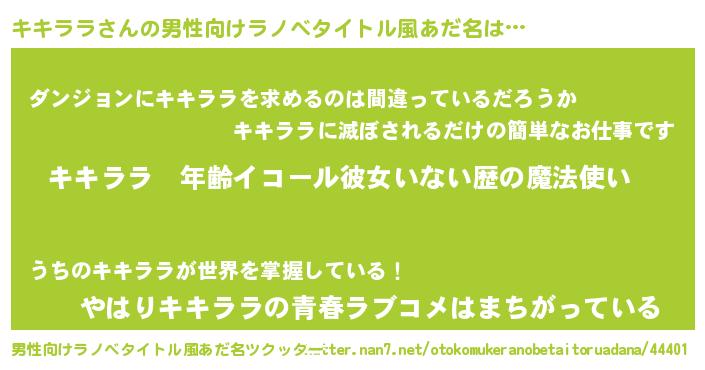 キキララさんの男性向けラノベタイトル風あだ名をツクッター!