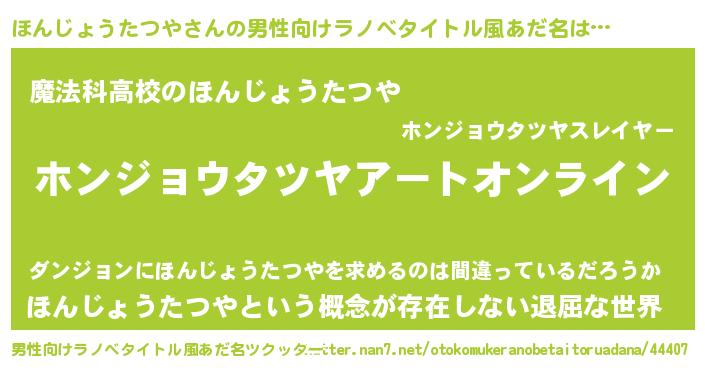 | 女子向けラノベタイトル風あだ名 | 『ほんじょうたつや姫と円卓の騎士』 |