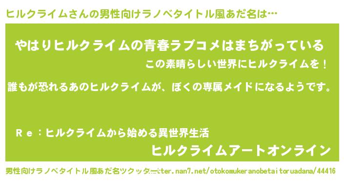 | 女子向けラノベタイトル風あだ名 | 『異世界でカフェヒルクライムを開店しました。』 |