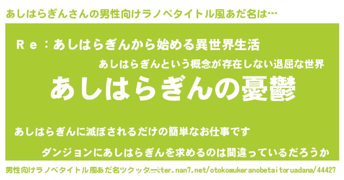 女子向けラノベタイトル風あだ名 | 『(仮)あしはらぎんのやんごとなき事情』 |