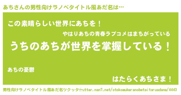 | ヒーロー風カッコイイあだ名 | 『仮面アチダー』『ウルトラあちマン』 |