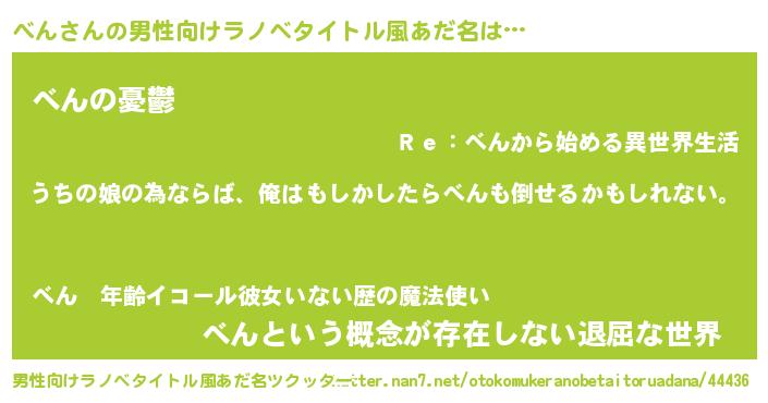 | 伝説のあだ名 | 『最強の忍者べん』『伝説の竜騎士べん』 |