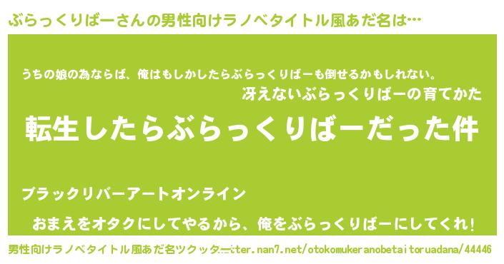 | 女子向けラノベタイトル風あだ名 | 『ぶらっくりばーの玉の輿計画!』 |