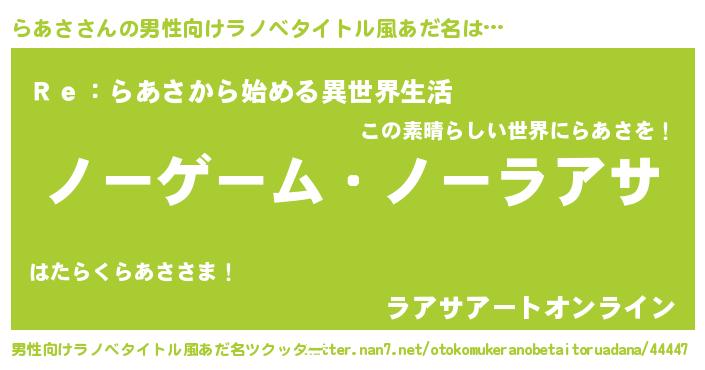 | 意味不明あだ名 | 『眠気覚ましガムらあさ味』『自称らあさ』 |