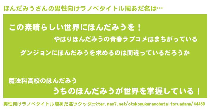 | 胡散臭い通販商品みたいなあだ名 | 『伝統あるサプリメント…その名も「ほんだみう」』 |