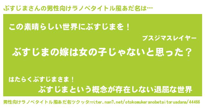 | 女子向けラノベタイトル風あだ名 | 『ぶすじま様がみてる』 |