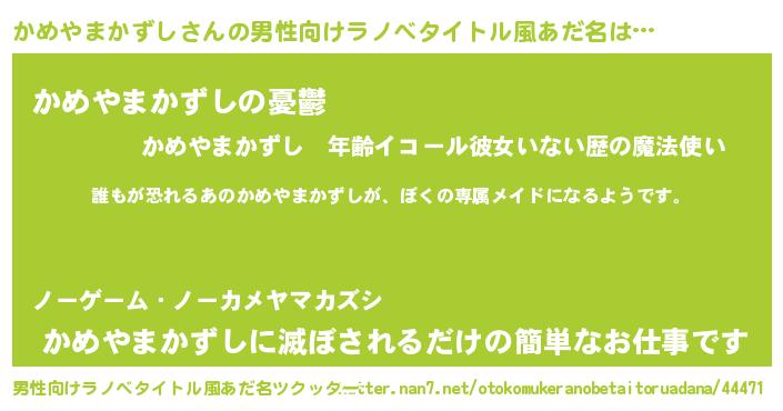 | 女子向けラノベタイトル風あだ名 | 『異世界でカフェかめやまかずしを開店しました。』 |