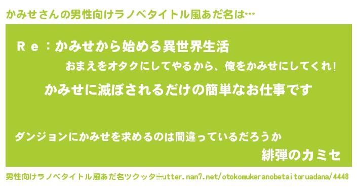 | ヒーロー風カッコイイあだ名 | 『サイバー戦士カミセ』『暗黒騎士カミ』 |