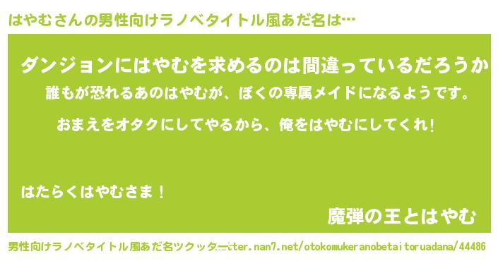 | 女子向けラノベタイトル風あだ名 | 『はやむ恋絵巻』『はやむは平凡を望む』 |