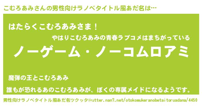| ヒーロー風カッコイイあだ名 | 『慈愛の使者こむろあみ』『仮面コムダー』 |