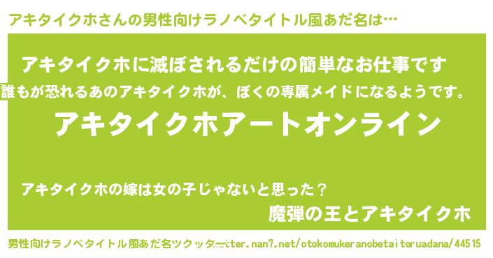 | ヘコむあだ名 | 『アキにー』『アキタイクホ(笑)』 |