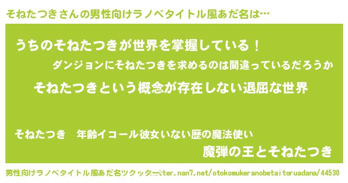 | 胡散臭い通販商品みたいなあだ名 | 『絶対に幸福をもたらす招き猫…その名も「そねたつき」』 |