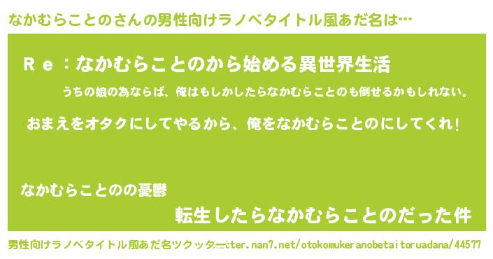 | 女子向けラノベタイトル風あだ名 | 『なかむらことの恋絵巻』 |
