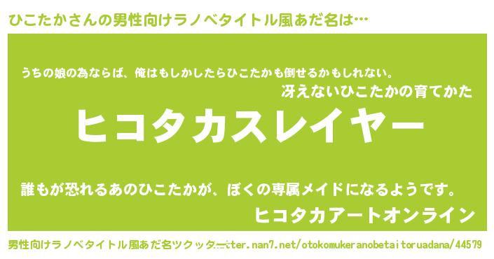 | ヒーロー風カッコイイあだ名 | 『ウルトラひこたかマン』『ネオヒコタカ』 |