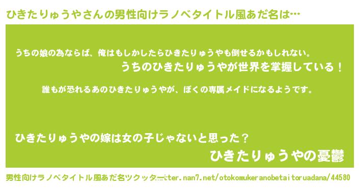 | 胡散臭い通販商品みたいなあだ名 | 『来世でも幸せになれる健康食品…その名も「ひきたりゅうや」』 |