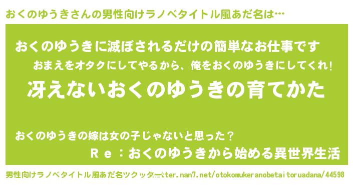 | 意味不明あだ名 | 『自称おくのゆうき』 |