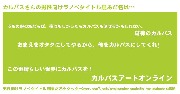 | ヒーロー風カッコイイあだ名 | 『友情の使者カルパス』『仮面カルダー』 |