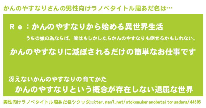 | 胡散臭い通販商品みたいなあだ名 | 『テレビで話題の高麗人参…その名も「かんのやすなり」』 |