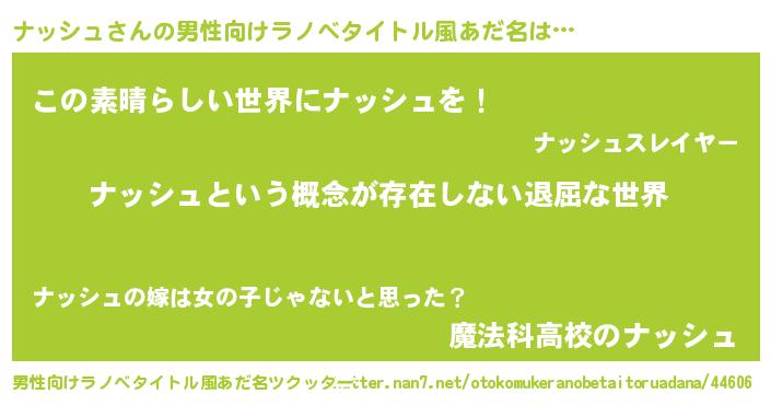 | 胡散臭い通販商品みたいなあだ名 | 『来世でも幸せになれる健康食品…その名も「ナッシュ」』 |
