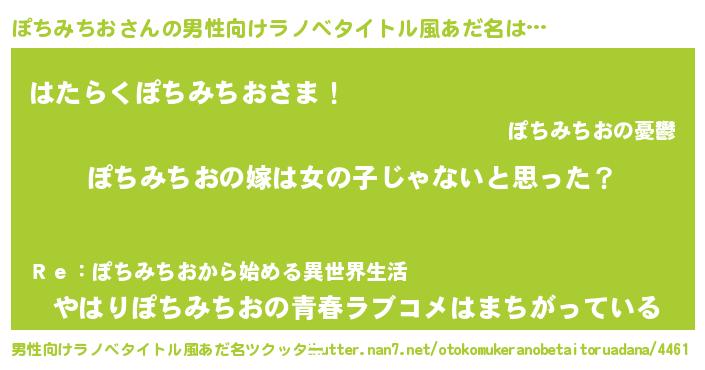 | 女子向けラノベタイトル風あだ名 | 『ぽちみちお様がみてる』 |