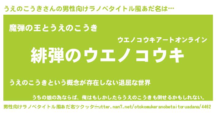 | 胡散臭い通販商品みたいなあだ名 | 『ハリウッド女優が絶賛した100年もののヴィンテージワイン…その名も「うえのこうき」』 |