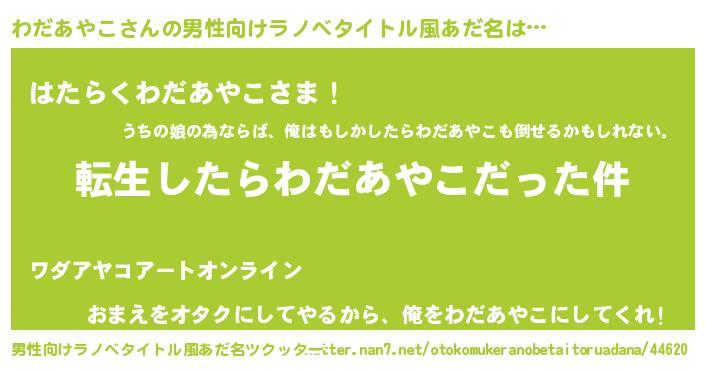 わだあやこさんの男性向けラノベタイトル風あだ名をツクッター!