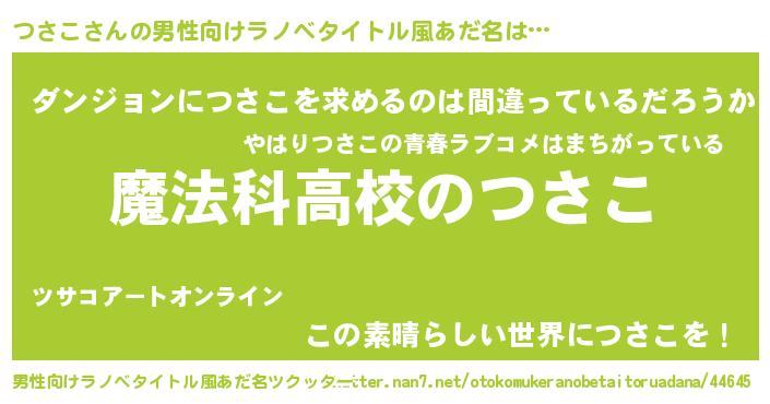 | 意味不明あだ名 | 『自称つさこ』『とにかく怪しいつさこ』 |