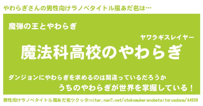 | 女子向けラノベタイトル風あだ名 | 『やわらぎなんてお断りですっ。』 |
