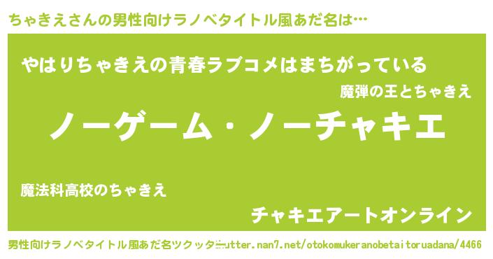 女子向けラノベタイトル風あだ名 | 『ちゃきえ恋絵巻』 |