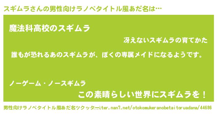 | ファンタジー風あだ名 | 『スギディッシュ』『ゼスギトゥ』 |