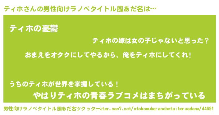 | 女子向けラノベタイトル風あだ名 | 『ティホ夫妻のなれそめ』 |