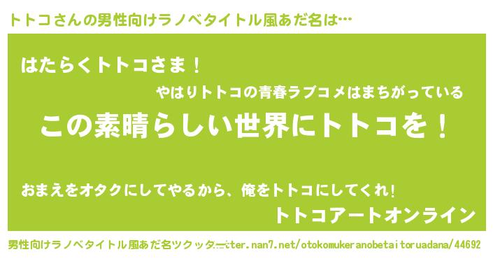 | 意味不明あだ名 | 『住所不定無職トトコ(7歳)』『自称トトコ』 |