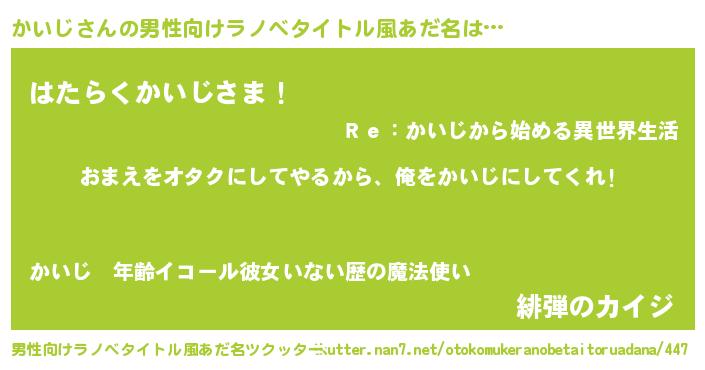 | 女子向けラノベタイトル風あだ名 | 『かいじ夫妻のなれそめ』『闇のかいじ』 |