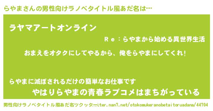 | 女子向けラノベタイトル風あだ名 | 『らやま恋絵巻』『らやま姫と円卓の騎士』 |