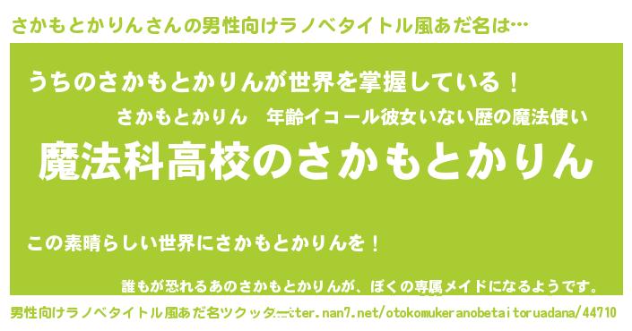 さかもとかりんさんの男性向けラノベタイトル風あだ名をツクッター!