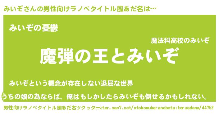 | 意味不明あだ名 | 『住所不定無職みいぞ(43歳)』『自称みいぞ』 |