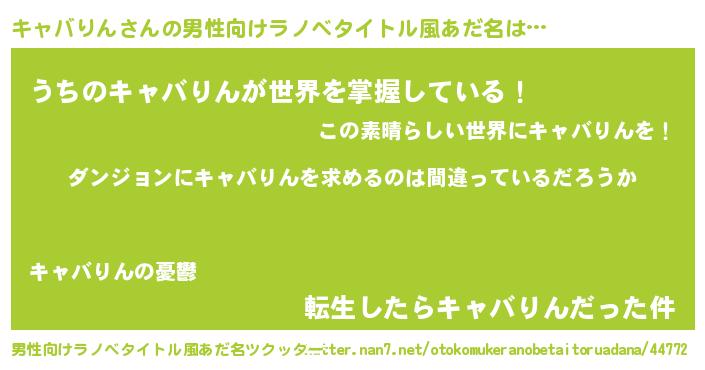 | 女子向けラノベタイトル風あだ名 | 『キャバりんの卵を拾いまして』 |
